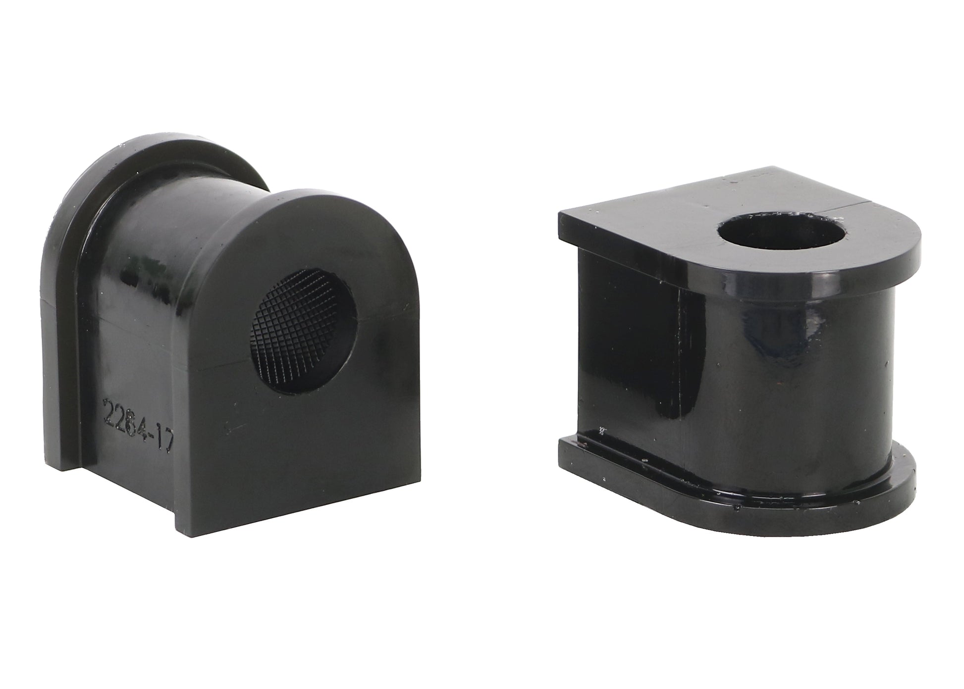 Designed to fit a 17mm sway bar. Whiteline's sway bar mount bushings not only boasts the latest in bushing material technology but feature a knurled ID specifically designed to retain grease. Backed up by a Limited Lifetime Warranty. Whiteline bushings are made from the latest highest quality synthetic elastomer and designed to synchronize your suspension system for optimal safety, handling, performance, ride quality, longevity and reduced maintenance. They are the most positive link between your vehicles body, springs, struts, arms, bars and shocks.