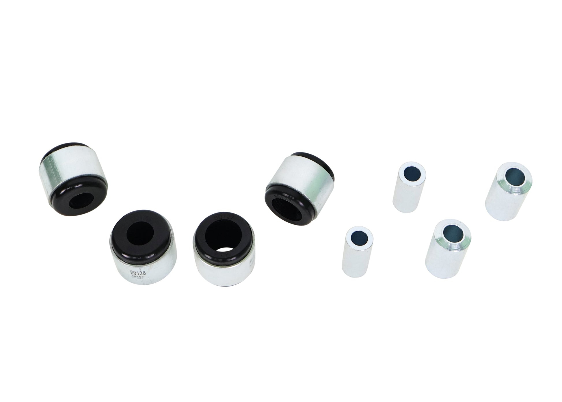 Suffering uneven tyre wear, unbalanced braking or a less predictable rear end while cornering. It could be your control arm bushings have failed. Replace these worn parts with Whiteline's superior formulation bushings with core characteristics ensuring superior elasticity, memory and outright durability that offer a safer more predictable vehicle. Whiteline control arm bushings are designed to improve vehicle stability, improve handling braking control and alignment. Backed by a limited lifetime warranty . Whiteline bushings are made from the highest quality elastomers and are designed to synchronize your suspension system for optimal safety.